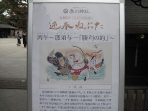 今年で26回目を迎える寒川神社の正月風物詩「迎春ねぶた」のテーマは、「丙午~那須与一『勝利の的』~」