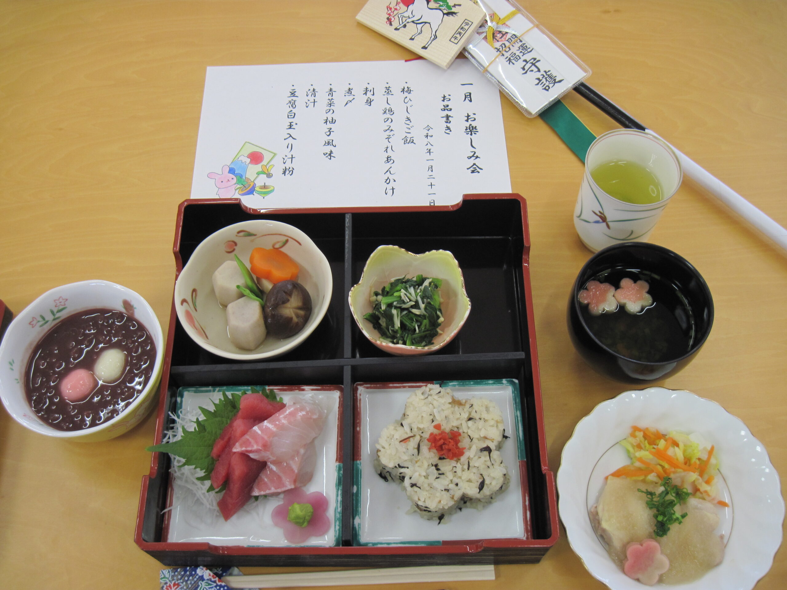 新年のお祝い膳です。蓋を開けると「おいしそう~」もちろん美味しいです!