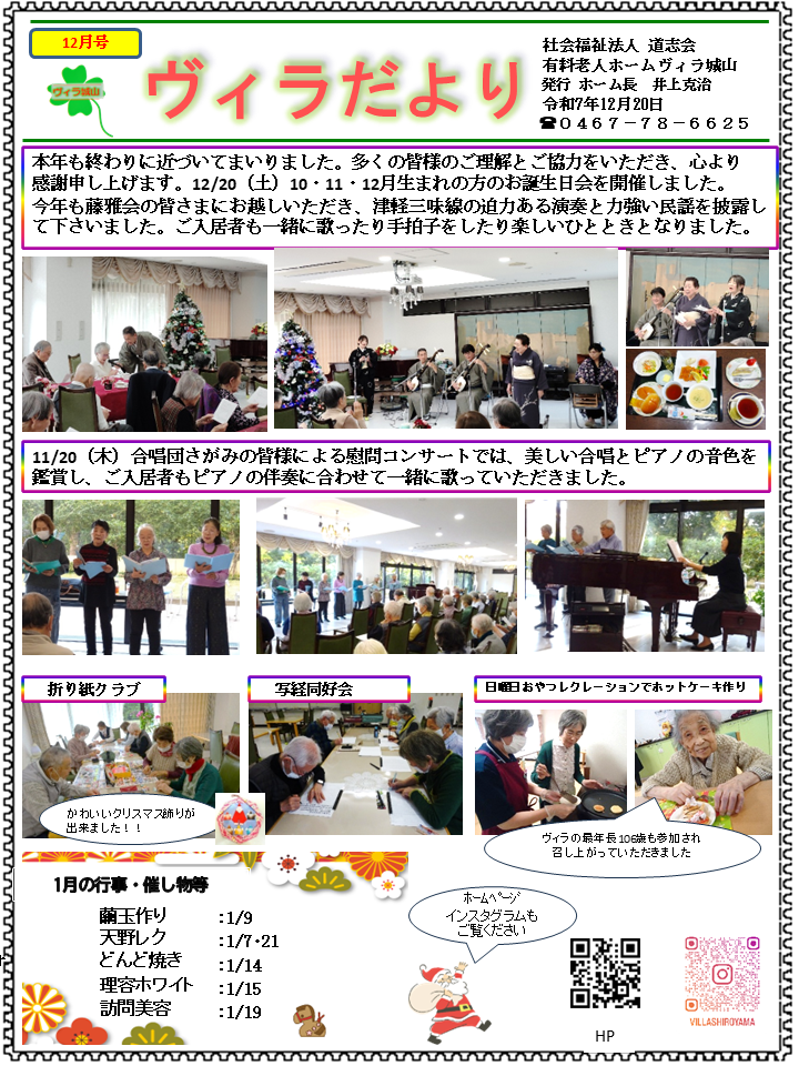 介護付有料老人ホーム ヴィラ城山のお知らせ